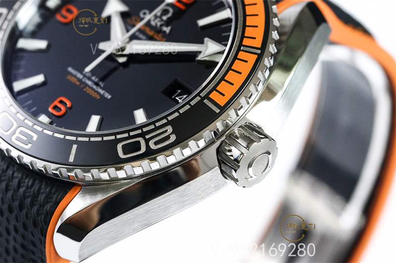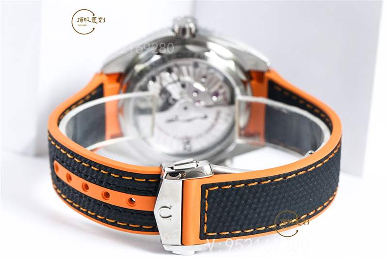 VS工廠升級版本的四分之一橙,主要修正了圈口天然橡膠彈性的問題。在第一代版本推出市場的時候,VS工廠的四分之一橙色便拿下了同款的高端市場,當時市場上有3s,om等大廠在做此款產品,而且產品非常漂亮,在外觀尺寸,打磨工藝上絲毫不弱于VS工廠的海馬四分之一橙,不過VS工廠勝在了一體化機芯的設計,而另外幾家的產品是貼的夾板,所以很不幸,即使產品非常優秀依然被k掉。后面VS為了穩固此款腕表的市場地位,專門就外圈四分之一橙色部分進行了升級,達到了與正品一致的彈性效果,橡膠表帶也是一次成型天然橡膠表帶。