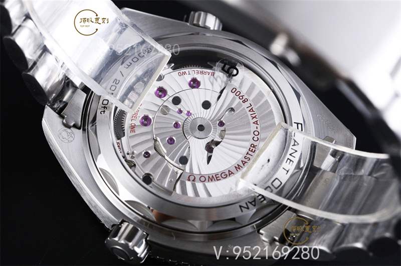 VS自主研發的8900機芯是真正的自主一體式機芯,不再是套甲板,機芯的每顆螺絲和寶石都具備真功能,不再是裝飾片;擺輪位置和擺輪大小同原裝完全一致,黑化螺絲、擺輪及發條盒,nivachoc避震,讓外觀細節上保持與原裝高度一致;時針快調,通過撥動指針調日歷,功能上與正品同步;機芯采用雙發條盒,儲能可達到和正品一樣60-72小時,并且該機芯也非常穩定此機芯的研發突破,寓意著歐米茄海馬系列提升至前所未有的復刻高度。