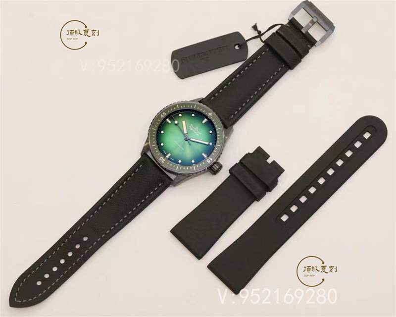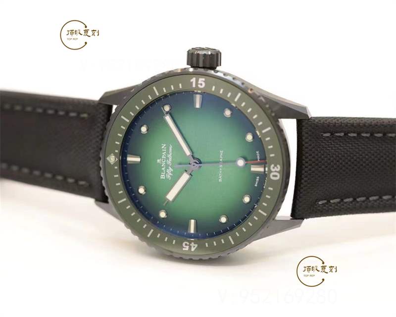 GF廠全新寶珀五十尋系列深潛器無溝雙髻鯊限量版腕表5005,極光綠表盤上,線條飾紋捕捉光線、折射異彩!深海極光,蘊(yùn)藏極妙美感。43mm冷峻黑陶瓷外殼,強(qiáng)度高,極耐磨,動(dòng)感色澤盡顯時(shí)尚張力!【附贈(zèng)進(jìn)口氟橡膠潛水表帶一副】