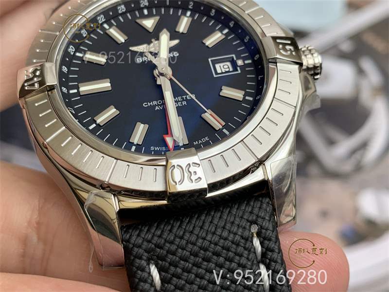 GF廠新品百年靈-復仇者雙時區自動機械腕表45(Avenger Automatic GMT 45)。原裝開模精鋼表殼(直徑45mm,厚度12.31mm),搭載Asia-2836機芯。可選擇精鋼表鏈或相匹配的黑色或藍色軍用防水皮革表帶。技術突破: 外圈夜光點所鑲嵌藍寶石玻璃與原裝一致帶“魚眼”效果(側看),制作難度極高,這也是作為鑒定是否GF出品的重要依據!G Factory,專注良心好品質。