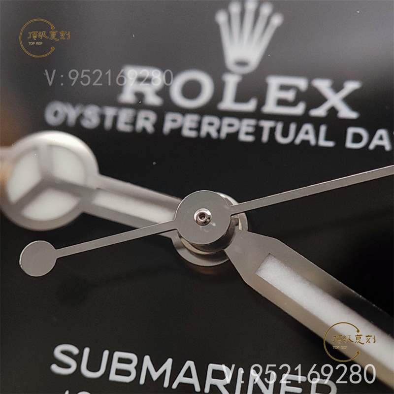 3. VS指針(秒針、分針、時(shí)針)和正品指針:圓形與方形針桿連接的地方干凈利落的直角對(duì)接;市面上其他版本:指針轉(zhuǎn)角連接處都是弧形對(duì)接,秒針差別特別明顯。而且很多都不是真實(shí)心針軸。這是鑒定真假表必看的一個(gè)點(diǎn)。