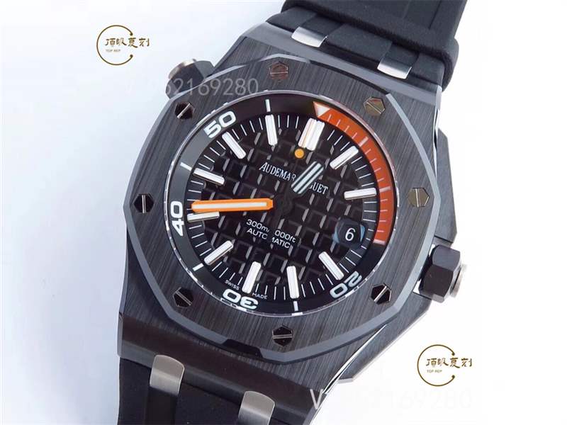 JF愛彼15707整體呈黑色,給人一種很低調時尚的感覺,讓人愛到極致,表頭經典的八角造型,深深的吸引到看到這只表的所有人,藍寶石鏡面下日歷窗的迷你藍寶石鏡面鍍藍膜,讓人有一種莫名的感動,橙色的刻度內圈給人一種與生而來的自信,這只表仿佛一只啞光版的黑色蘭博基尼一樣性感迷人。