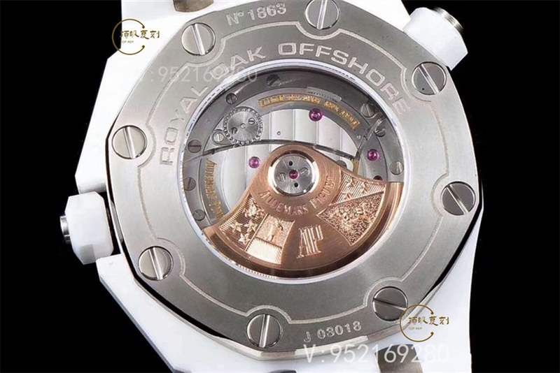 底蓋同樣采用8顆螺絲與圈口螺絲相連,堅固性非常高。 機芯通過拆解可以看到采用海鷗2824自動機械機芯加甲板制成的復刻原裝3120機芯,甲板打磨精致,自動陀鍍18K玫瑰金制成,上面用浮雕的形式雕刻了愛彼logo和馬車圖案,效果非常立體!