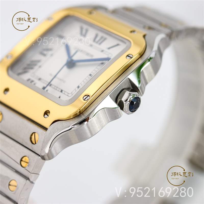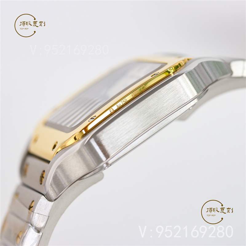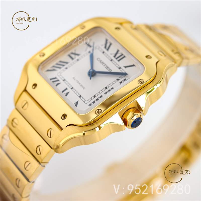 大家好,我是zslhs小編,今天給大家介紹gf廠卡地亞全新開發35mm中號山度士鍍金款,316L精鋼殼套,搭載MIYOTA9015自動上鏈式機芯(原配自動陀,原汁原味,質量更可靠!大大減少更換自動陀后產生掉陀的可能性。)表殼寬度:35.1mm,厚度:8.83mm。 G Factory,專注良心好品質!