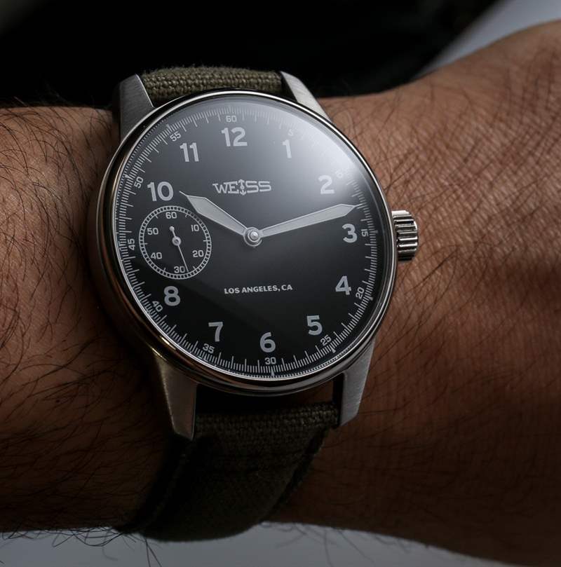 或許我對(duì) Weiss Standard Issue Field 手表(“Field 手表”)也情有獨(dú)鐘,因?yàn)樗厦孢€寫著“洛杉磯”——我出生和長(zhǎng)大的城市。諷刺的是,Cameron Weiss 先生,該品牌并非來(lái)自洛杉磯,但他是一位地道的美國(guó)制表師,以在美國(guó)制造手表為榮。當(dāng)問(wèn)他成為美國(guó)制造手表“新”趨勢(shì)的一部分感覺如何時(shí),他并不完全覺得自己像個(gè)革命者,但似乎更喜歡在市場(chǎng)上生產(chǎn)手表的想法意味著被購(gòu)買。