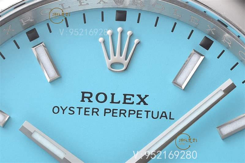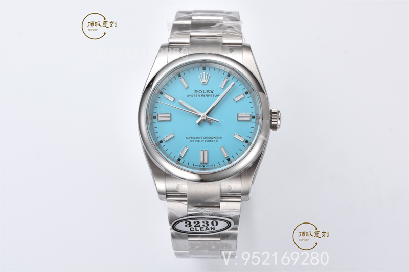 C廠勞力士蠔式恒動在逐漸齊全中,目前推出的是36mm尺寸,采用的是904精鋼材質(zhì),同步原版,表殼做工細膩,拋光拉絲工藝相結(jié)合,都是C廠水準。鏡面采用的是高品質(zhì)藍寶石鏡面,通透度很高,耐磨耐刮,注意別磕碰。盤面以蒂芙尼藍為例,顏色調(diào)配還是很不錯的,比較起來C廠和VS廠的顏色調(diào)配都會比EW廠更好一些,尤其是一些盤面顏色比較特殊的款式,比如這個蒂芙尼,EW廠顏色是會略深的,而C廠和VS廠則更為準確無色差。