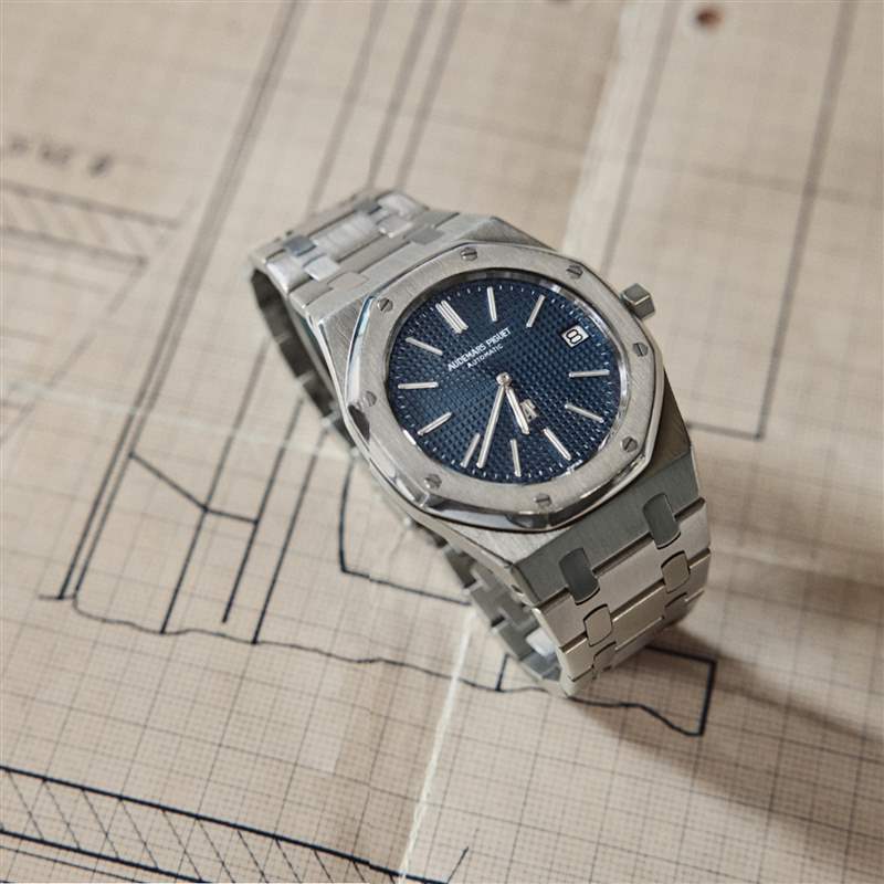 藍(lán)面皇家橡樹(shù)Jumbo超薄二針的型號(hào)目前為16202ST.OO.1240ST.02,但其實(shí)2022年時(shí)型號(hào)還是16202ST.OO.1240ST.01,差在尾數(shù)的「1」跟「2」代表了兩種型號(hào)的自動(dòng)盤不同,16202ST.OO.1240ST.01的自動(dòng)盤屬于皇家橡樹(shù)50周年的特別式樣,至于16202ST.OO.1240ST.02的自動(dòng)盤則是改回與一般皇家橡樹(shù)系列一致的設(shè)計(jì)。