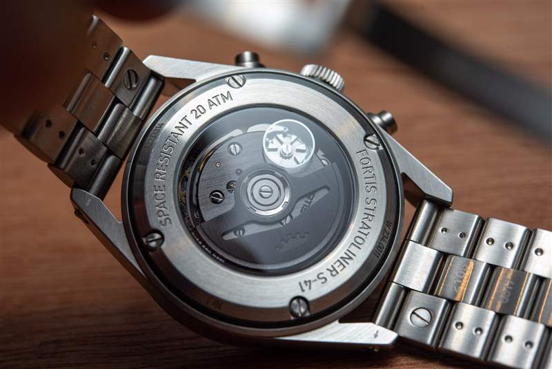 Fortis Stratoliner 的一切都采用迷人的日耳曼風(fēng)格,從單個(gè)表帶鏈節(jié)到雙層表帶,都很粗壯,但并不笨重??梢钥隙ǖ氖?,它不是手腕上的卡地亞 Tank,但這里的目標(biāo)人群顯然是在追求一款設(shè)計(jì)精致、堅(jiān)固耐用的包。坦率地說(shuō),這是一款想要獲得太空認(rèn)證的手表的先決條件。