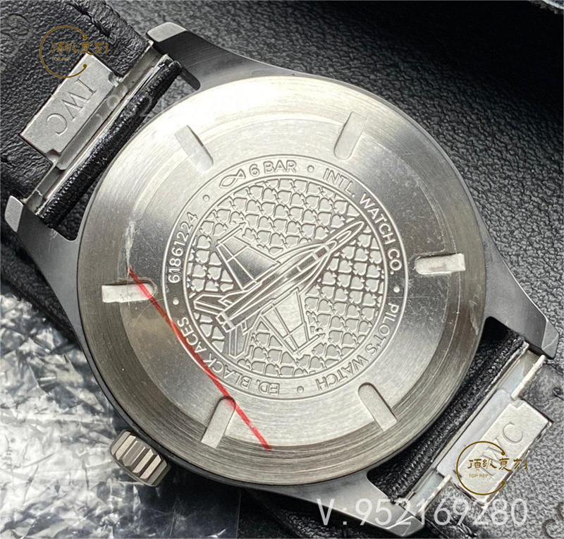 搭載的是一個西鐵城的9039機芯,選入式的把頭向下旋轉,彈開以后拉出一檔,直接調時間,向下旋轉,旋轉針轉動一檔調試,這個也是對板某個原裝的,一個密底的設計,后蓋的圖案是一個戰斗機的圖案,這個圖案做的也非常的清晰立體,顏值非常高的一款腕表,整體的做工細節都是非常到位。