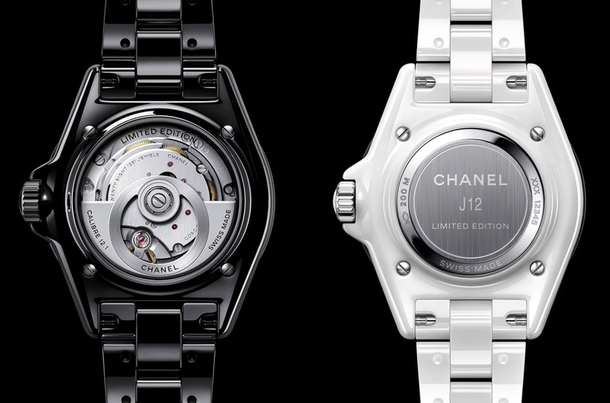 J12 Couture腕表的面盤設計同樣引人注目。面盤上鑲嵌的12顆長階梯形切割鉆石替代了傳統的時標,表冠亦鑲有明亮式切割鉆石,為腕表增添了華麗高雅的個性。機芯經過NAC電鍍上黑色,與表背的白色系表殼與表帶形成鮮明對比,顯得格外吸睛。