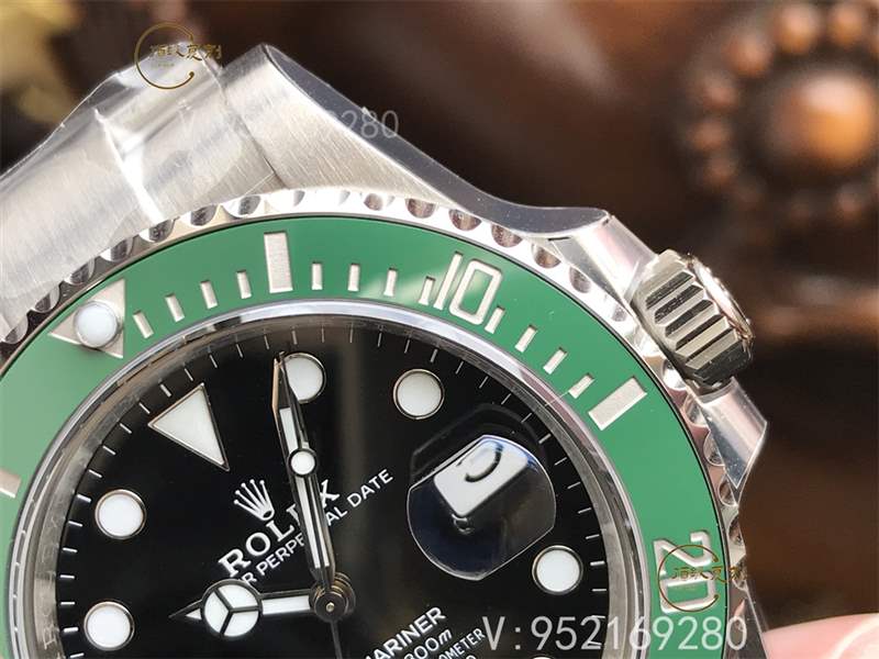 41mm新款的勞力士水鬼,作為一個大項,肯定是要拿真品一比一開模具,而不是僅僅參考40尺寸的水鬼然后在尺寸上做大。所以此款腕表的細節還是一比一復刻,而且采用一表一卡一碼。