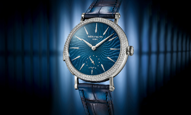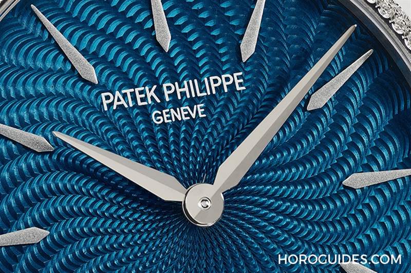 流麗出眾的表面則是機刻雕花與琺瑯二大手工技藝的結合。金質表面底板先以手工綴以交錯渦形飾紋,紋樣靈感來自編號992/137G-001、2019年的「暹羅斗魚」懷表;接著運用透明琺瑯稀有手工技藝,在表面添上深藍色透明琺瑯,足以透現底部裝飾,清晰可見。白金矛形時針和分針設計優雅,色彩鮮明亮麗,在表面上格外出眾。