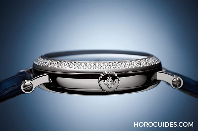 編號7000R-001 Ladies First三問腕表于2011年至2017年登場,搭配玫瑰金表殼和乳白色表面。如今品牌以最新精巧白金款式取代上述時計,把表殼直徑稍為增大,并選用藍色大明火透明琺瑯表面及鑲鉆表環。