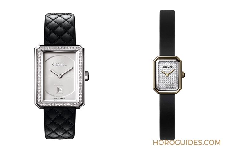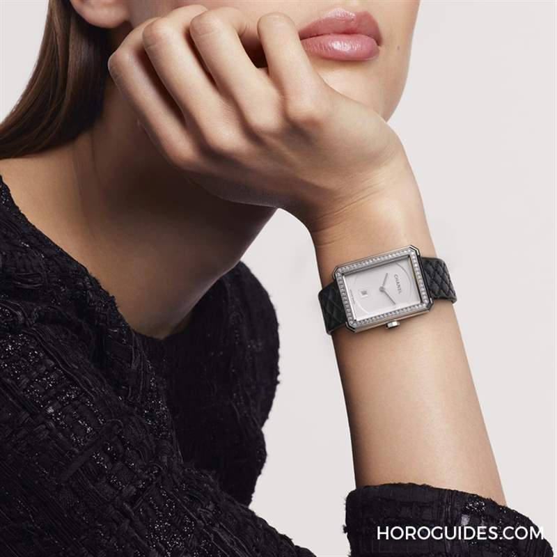 2020年全新發表兩款Boy?Friend新作,精鋼表殼、乳白色扭索紋表盤,表冠上鑲嵌黑色凸圓型切割尖晶石,并搭配設計靈感得自2.55包菱格紋圖騰的小牛皮表帶,體現Chanel經典的黑白風格美學。